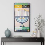 OESD Light The Menorah Wall Hanging 51275USB Celebrate Hanukkah this year with our Light the Menorah Wall Hanging! Stitch its beautiful details, then enjoy the interactive experience for all eight holiday nights, as the candles are removable. Pretty flowers, detailed elements, and a vibrant color palette will make this a Hanukkah favorite for years to come. Finished size: approx 16" x 31"