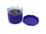 Magnetic Pin Cups hold your pins point down so you don't get poked trying to pick one up while sewing. Each Magnetic Pin Cup comes with a removable case for safe storage while traveling to class (or to keep curious pets out!). Each Magnetic Pin Cup holds up to 100 2.1in (53mm) pins.