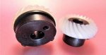 Singer 600 series, 750, 756, 758, 900, 920, 935U, 1030, 1036, 1060, 1200, 2000, 2001, 2005, 6235, 6548, 9117 - Angled gear set meshes better therefor runs smooother and quieter. Replaces gears 163329 and 163997